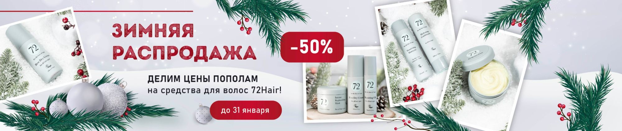 С 25 августа по 31 января 2025 года покупайте профессиональные средства для волос бренда 72Hair со скидкой 50%!