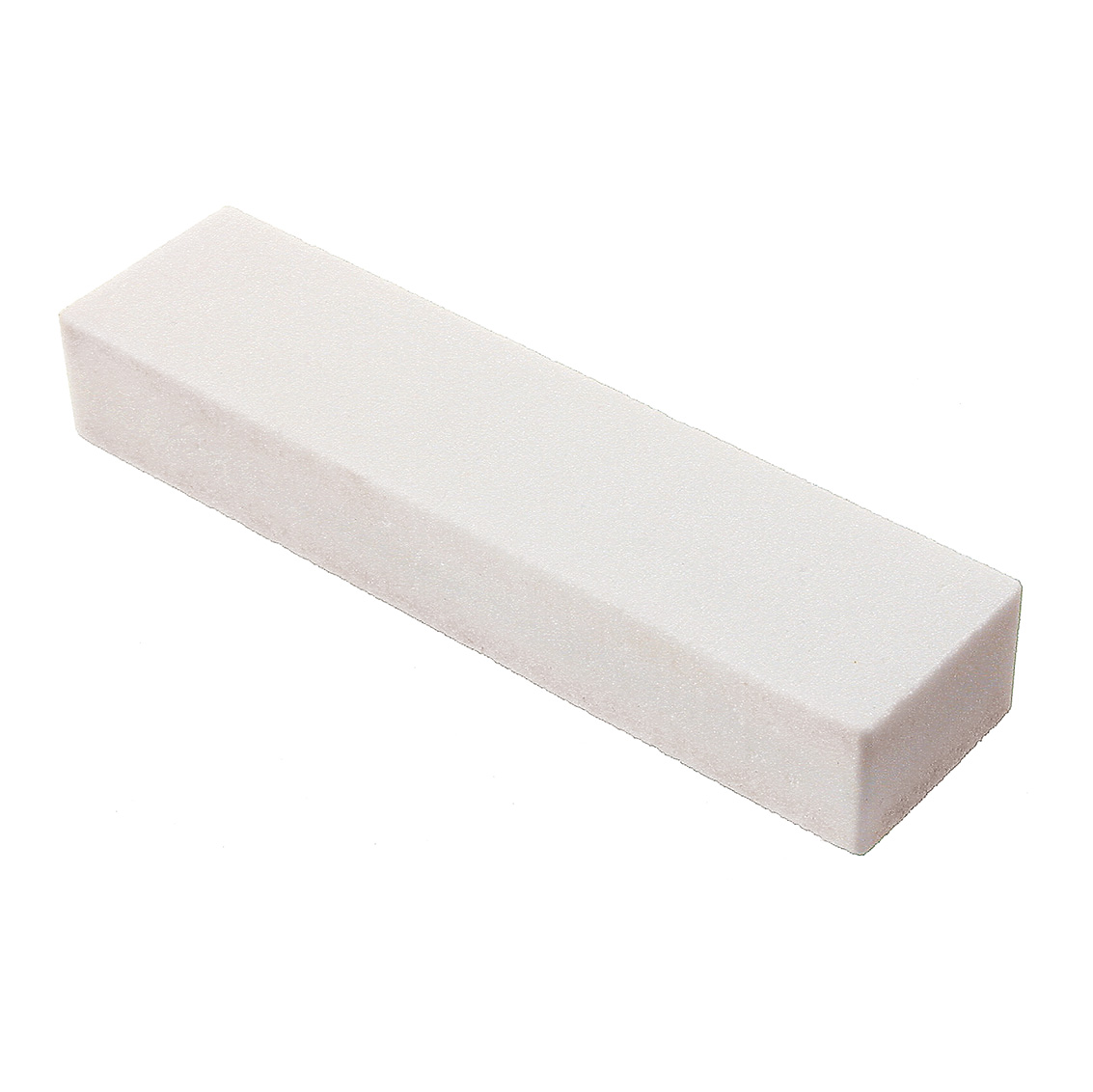 Белый камень для чистки алмазных вращающихся инструментов: для удаления частичек кожи и ногтей с повержности насадок. Допустимая скорость вращения насадок во время чистки камнем от 1 000 до 5 000 оборотов в минуту. Размер: 100*25*14 мм.
